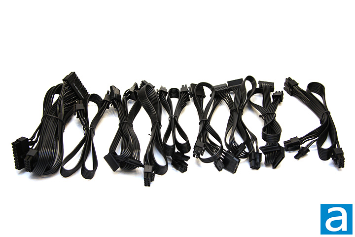 A total of nine modular cables are included out of the box. All modular cables are flat and easy to bend, making them extremely easy to work with. All wires are 18 AWG, including high current PCI Express and ATX/EPS connectors. Usually, manufacturers will fatten them up to 16 AWG, but Antec opted out on that.