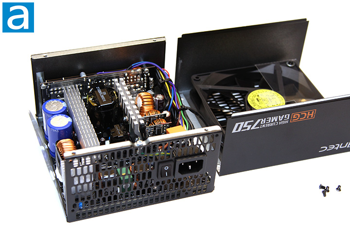 As always, we opened up our Antec High Current Gamer Bronze 750W power supply to take a detailed look at what is going on inside. Please note that doing this at home will void your five-year warranty, thanks to the warranty seal Antec applied over one of the attachment screws. But for the benefit of you, we cracked ours open so you do not need to, haha. There are no user serviceable parts inside.