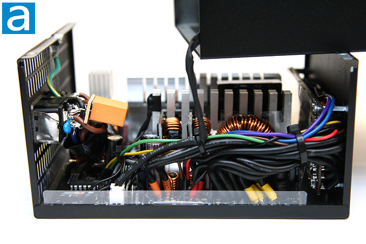 At the back, we have a daughterboard covering a portion of the rear panel for the modular cable sockets. All modular sockets connect to the main PCB after the secondary stage via a series of wires. This is not as efficient as having it directly soldered at the bottom to reduce power transmission loss, but this is an 80 Plus Bronze power supply. The output connector configuration can be seen on the previous page. Overall, the internal build quality of Antec's High Current Gamer Bronze 750W power supply is very good -- something we would expect from what we have seen from the company in the past. Components are arranged pretty well for optimal cooling with minimal wires running around inside, and solder points on its black PCB is quite clean in general. I would say the Antec High Current Gamer Bronze 750W is generally very good with regards to the selection of components used under the hood; appropriate for its performance class.