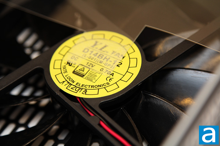 Lastly, we see a 135mm fan that provides cooling to the Antec High Current Gamer Bronze 750W's internal components. It is connected to the mainboard using a 2-pin connector. A 135mm fan is only marginally smaller than the 140mm maximum you can fit in an ATX power supply, and it is beneficial in most cases in providing lots of airflow at lower speeds for quiet operation. Yate Loon is the fan OEM, with D14BH-12 as the model number, as shown in our photo above. Further research indicates the D14BH-12 is a double ball bearing fan specified at 0.70A for a maximum of speed of 2800 RPM. The rated airflow is 140 CFM at 48.5 dB of noise.