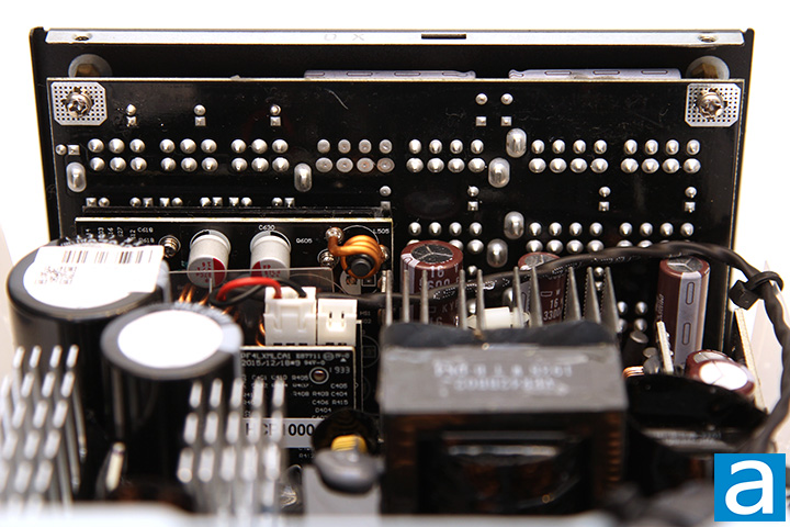 At the back, we have a large daughterboard covering the entire rear panel for the modular cable sockets. All modular sockets at the bottom are soldered directly to the main PCB after the secondary stage to reduce power transmission loss. The output connector configuration can be seen on the previous page. Overall, the internal build quality of Antec's Signature Platinum 1000W power supply is probably only second to one, which is the Titanium series. This nothing short of what we would expect from a flagship lineup from the OEM. Components are arranged beautifully for optimal cooling with almost no wires running around inside and solder points on its black PCB are very clean in general. I would say the Antec-branded, Seasonic-built Signature Platinum 1000W is excellent with regards to the selection of components used under the hood.