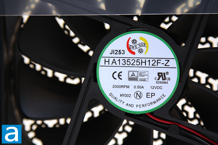 Lastly, we see a 135mm fan that provides cooling to the Antec Signature Platinum 1000W's internal components. It is connected to the mainboard using a 2-pin connector. A 135mm fan is only marginally smaller than the 140mm maximum you can fit in an ATX power supply, and it is beneficial in most cases in providing lots of airflow at lower speeds for quiet operation. Ong Hua is the fan OEM, with HA13525H12F-Z as the model number, as shown in our photo above. Further research indicates the HA13525H12F-Z is a fluid dynamic bearing fan specified at 0.50A for a maximum of speed of 2000 RPM. The fan is not supposed to activate until the PSU is loaded to approximately 400W with Hybrid Mode active. As such, it should remain off for the most part. Even when it is on, Antec uses a silent speed profile, so noise is not going to be a problem at all. Fans with fluid dynamic bearings generally have much longer lifespans compared to sleeve bearing fans and is quite suitable for this application.