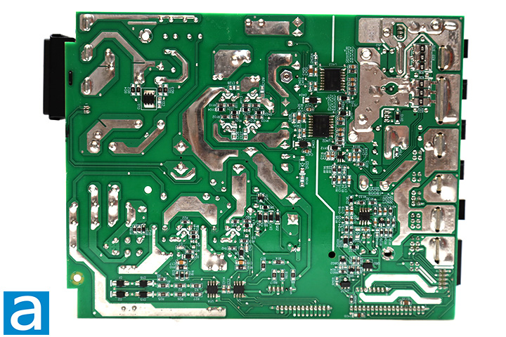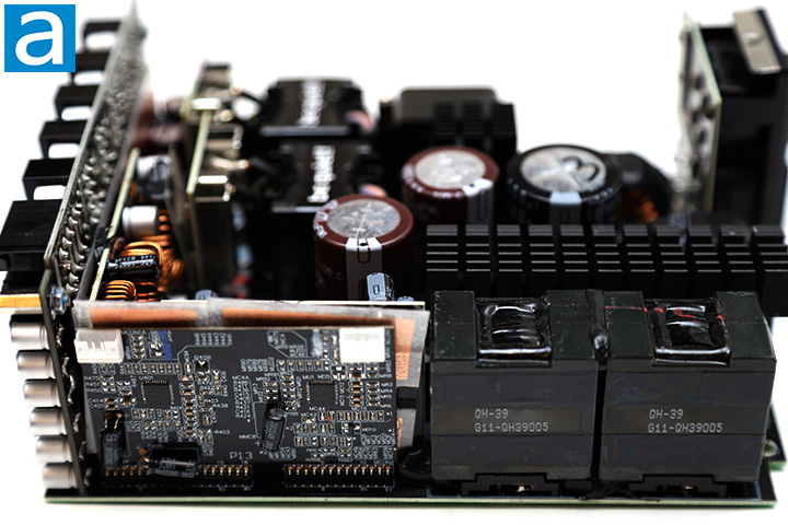 At the back, we have a large daughterboard covering the entire rear panel for the modular cable sockets. A Weltrend WT7518 monitoring IC for over/under current and over/under voltage protection can be seen. The datasheets for all components mentioned in this review can be found on their respective manufacturer's websites.