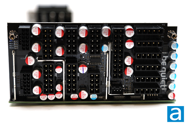 All connection points are soldered directly to the add-on PCB after the secondary stage to reduce power transmission loss compared to having wires. The output connector configuration can be seen on the previous page. Overall, the internal build quality of be quiet!'s Dark Power Pro 13 1300W is excellent. Components are arranged very well for optimal cooling with practically no wires running around inside, and solder points on its black PCB is quite clean in general. I would say the be quiet! Dark Power Pro 13 1300W is generally excellent with regards to the selection of components used under the hood, appropriate for its performance class.