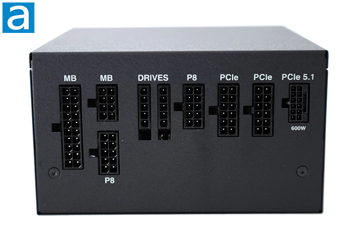 The rear cable connection panel is done nicely. be quiet! has also made the labels right side up in standard orientation. To ensure you know what is going on, they are all clearly labeled for minimal ambiguity. Starting from the left, we have the Motherboard section that supports an ATX 24-pin connector by two separate blocks next to each other. Under that is the first of two 8-pin connectors for ATX/EPS cables. Next, there are two Peripherals outputs for SATA and Molex devices, followed by the second 8-pin connector for ATX/EPS cables. Lastly, we have two traditional PCIe headers and one 16-pin 12V-2x6 PCIe 5.1 600W header. Incompatible outputs will not physically fit into each other, so be quiet! has done a great job in this regard. This is a reasonable array of outputs in correspondence number of connectors on each modular cable, which should be sufficient for casual users and power enthusiasts alike.