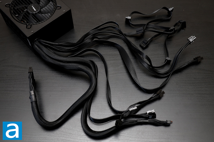 As mentioned previously, the be quiet! Pure Power 12 1000W uses fixed cables and is a non-modular power supply. The cable lead-out location is as seen above, and two of the cables are wrapped in their own mesh sleeves. There are no red or yellow cables, which is a good thing. While non-modular power supplies may make for a messy cabling job, especially if not all the connectors are utilized, it does mean that there is no reduced electrical contact loss at the connectors. Even so, this is not a huge issue for modular power supplies, and personally, I much prefer working with a modular one. Otherwise, external build quality of the be quiet! Pure Power 12 1000W is good. Edges are smoothed over, but scratches may still show up. Panel gaps are also kept to a minimum.
