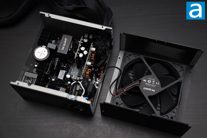 As always, we opened up our be quiet! Pure Power 12 1000W power supply to take a detailed look at what is going on inside. Please note that doing this at home may invalidate your 10-year warranty thanks to a seal that extends over one edge of the power supply. But for the benefit of you, we cracked ours open, so you do not need to. There are no user serviceable parts inside. Disassembling the be quiet! Pure Power 12 1000W is quite straightforward and you can do so by removing four screws next to the fan mount and a fifth screw on the side under the warranty label. Our photo above shows an overhead view of its internal components. Despite a notable design difference from the Pure Power 12 M 1000W, I think the OEM is still HEC, a manufacturer of mostly budget products since 1979. As such, the build quality is mostly good. There is a total of three heatsinks inside, all located on the primary side.