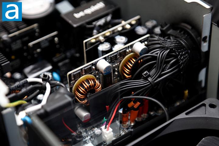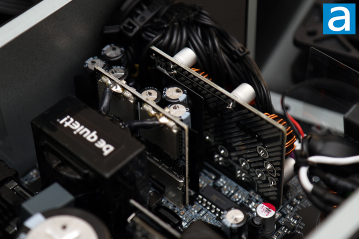 Finally, you can see where all the cables are connected and sleeved to lead outside of the be quiet! Pure Power 12 1000W. There is nothing too special here, other than the fact there are a lot of cables running around. The overall build quality is good for a budget power supply with some corners cut to keep the costs down. Component selection is on the lower tier of parts. Components are spaced well enough to ensure airflow and heat dissipation.