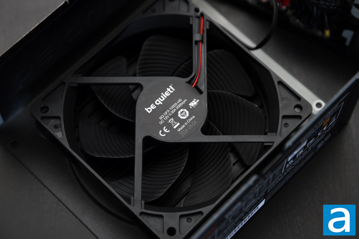 Finally, the fan in the be quiet! Pure Power 12 1000W is marked as the QF2-12025-HS, and connects to an add-in board with a 2-pin connector. This is a 120mm fan, which is a bit small for a power supply of this size and wattage, although if there is not much heat generated, this is not necessarily something to be concerned about. Otherwise, this is a rifle bearing fan that operates at 2000RPM and 0.3A. Fans with rifle bearings are relatively quiet and have much longer lifespans compared to sleeve bearing fans, making it quite suitable for this application.