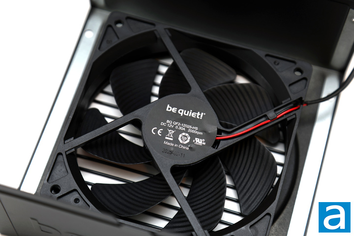 Finally, the fan in the be quiet! Pure Power 13 M 1000W is marked as the QF2-13025-HS and connects to an add-in board with a 2-pin connector. It is controlled by a Grenergy GR8031 IC. This is a 120mm fan, which is a bit small for a power supply of this size and wattage. However, if there is not much heat generated, this is not necessarily something to be concerned about. Otherwise, this is a rifle bearing fan that operates at 2000RPM and 0.3A. Fans with rifle bearings are quieter and have much longer lifespans compared to sleeve bearing fans, making it quite suitable for this application.