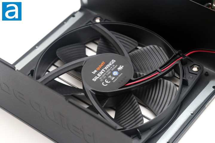 Finally, there is a 135mm fan that provides cooling to the rest of the components of the be quiet! Straight Power 12 1200W. It is connected to the power supply with a 2-pin connector. A 135mm fan is only slightly smaller than a 140mm maximum you can fit in an ATX power supply, while still providing sufficient air movement to operate at lower speeds for a quieter overall operation.