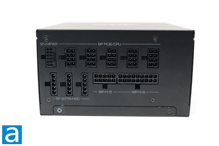 There is also an ample number of each of the connectors, allowing for a wide array of components to be plugged in. Starting from the top, there are five 8-pin PCI Express or CPU connectors and a 12VHPWR connector. The 12VHPWR is a newer connector for modern graphics cards, and this power supply can deliver up to 450W over this connection. Next, there are three 5-pin SATA/Molex connectors for storage drives and other SATA/Molex-powered devices. Finally, the motherboard connector is divided up into two large blocks adjacent to each other. Each of the connectors are well-grouped together, making it easy on cable management within the case. Overall, the Cooler Master GX III Gold 850W is well-built. The construction is clean and there are no large gaps where the metal pieces connect.
