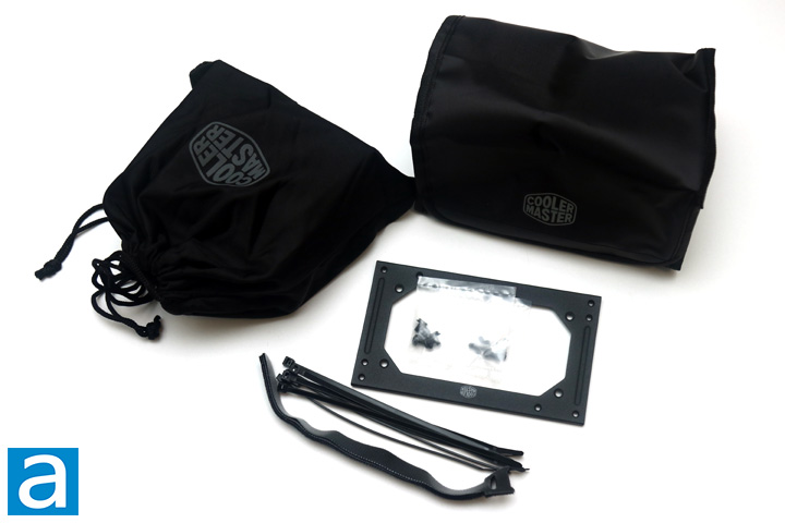 Out of the box, the Cooler Master V SFX Platinum 1100W is wrapped in a felt drawstring bag. It is packaged between two thick gray foam blocks to ensure the power supply is kept safe during the travel. All of the cables are in a clear resealable bag and packaged in a separate Velcro sealed fabric pouch with each cable separated by a twist-tie. In a third separate bag, Cooler Master has provided users with an SFX-to-ATX bracket, several cable ties, and a few Velcro straps. Finally, a bit of documentation is included. As we saw on the box, we do have a lengthy ten-year warranty included with the V SFX Platinum 1100W. The only other power supply in this lineup is a higher 1300W unit.