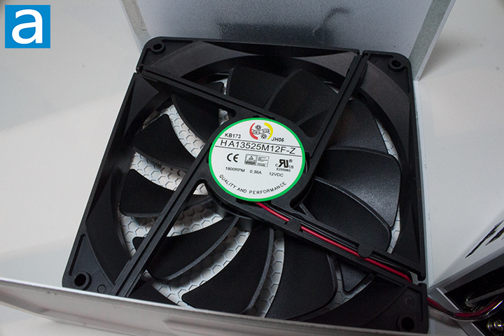Lastly, we have a 135mm fan that provides cooling to the Cooler Master V650 Gold V2 White Edition 650W’s components. Although a 135mm fan may seem big, it is quite average for a power supply with a bottom mounted fan. The fan should be adequate for cooling this power supply. The fan is a Hong Hua HA13525M12F-Z, as shown in the photo above. From the label, you can see this fan operates at 12V and 0.36A and is rated to rotate at a maximum of 1800RPM.