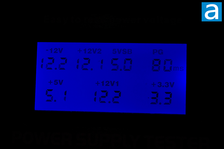 Voltages with minimal load are generally accurate, which is a basic requirement of power supplies out of the box. In this situation, all are within 2%. The PG or Power Good delay is quite low being 80ms. A good delay will lay between 100ms to 500ms, so it is a bit of out ATX specification.