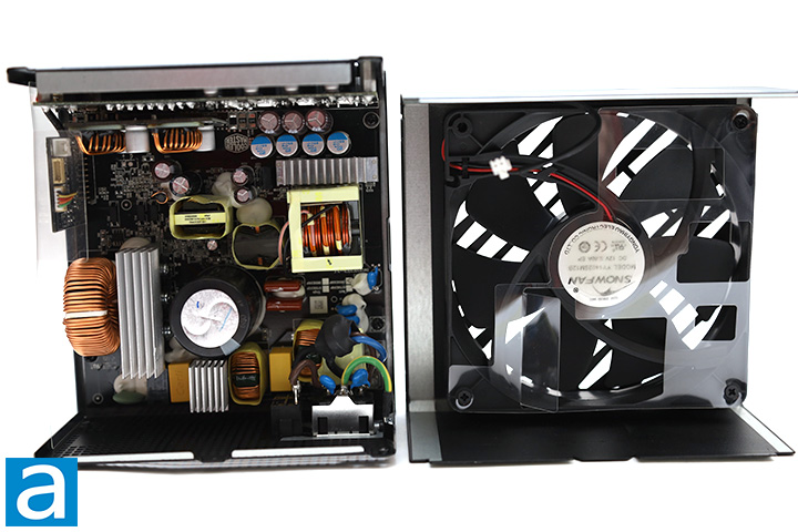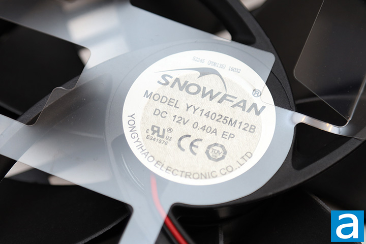 The fan's sticker shows this is a Snowfan YY14025M12B, as shown in our photo above. According to the manufacturer data sheet for this model number, this is supposed to be a 140mm fan, but I physically measured it, and it is indeed 135mm per Cooler Master's specifications. The PSU specifications also states a fluid dynamic bearing fan, but the model number seems to suggest a ball bearing. Given the incorrect dimensions, I would not be surprised if the model number on the sticker is probably inaccurate. Just for reference, the actual YY14025M12B is rated at 0.4A for a maximum speed of 2000 RPM, 101.81 CFM airflow, 2.75 mmH2O air pressure, and 40.6 dBA of noise. Fans with fluid dynamic bearings generally have much longer lifespans compared to sleeve bearing fans and is quite suitable for this application.