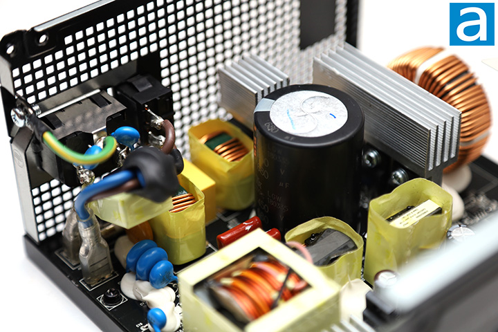 Pulling the enclosure apart and we got straight to the internal inspection. The transient filter stage is the first input stage of a computer power supply, so we will take a look at that first. Cooler Master has always done a great job in the past to make sure their performance power supplies meet or exceeds the recommended requirements, and the V850 Gold i multi 850W is no exception. The Cooler Master V850 Gold i multi 850W has one metal oxide varistor, two metalized polyester X-capacitors, six ceramic Y-capacitors, and two ferrite coils. This is two times the amount of X and three times the amount Y capacitors than recommended. Considering some PSUs have missing MOVs, I am happy to see it here as this component is used to stabilize spikes from the AC line.