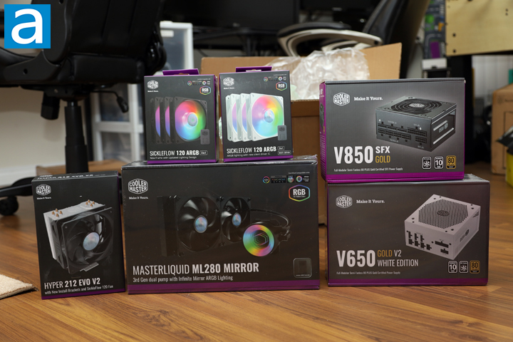 Today's report unit of the Cooler Master V850 SFX Gold 850W traveled from Brea, California to our APH Networks offices here in Calgary, Alberta. This large parcel was shipped to us by FedEx with their International Ground service. The box arrived in typical condition with some slight bruising in the corners, but nothing to be seriously concerned about. Along with the power supply, we received a whole bunch of other Cooler Master products that we have reviewed, including the SickleFlow 120 ARGB 3IN1, Hyper 212 EVO V2, MasterLiquid ML280 Mirror, and V650 Gold V2 White Edition 650W.