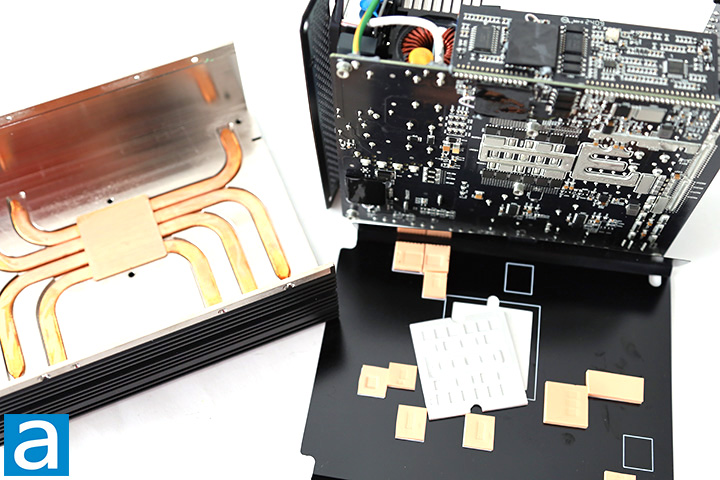 The +12V MOSFETS are cooled by a copper contact base through a heat pad that leads to four heatpipes going in eight directions. Heatpipes are supposed to efficiently lead the heat away from its source due to the low heat of vaporization, or phase change energy, of the fluid inside. The heat is then dissipated through a finned design of the outside of the X Silent Edge Platinum's aluminum enclosure.