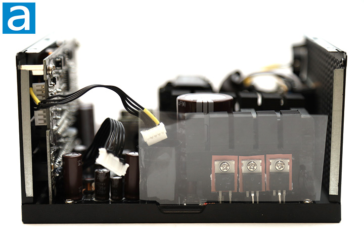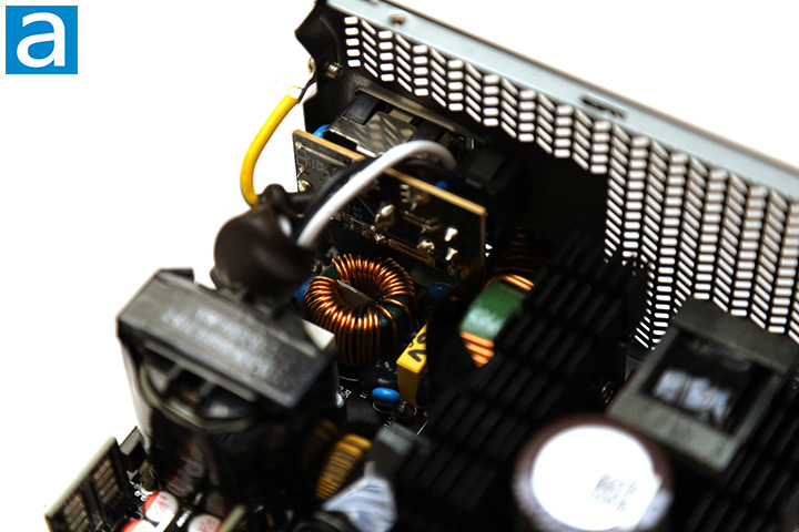 All connectors on the daughterboard are directly soldered to the main PCB to reduce power transmission loss. The output connector configuration can be seen on the previous page. Overall, the internal build quality of Cooler Master's XG850 Plus Platinum 850W power supply is excellent. Components are arranged very well for optimal cooling with minimal wires running around inside, and solder points on its black PCB is quite clean in general. I would say the Cooler Master XG850 Plus Platinum 850W is generally good with regards to the selection of components used under the hood, but some of the manufacturers are not commonly seen in high-end PSUs.