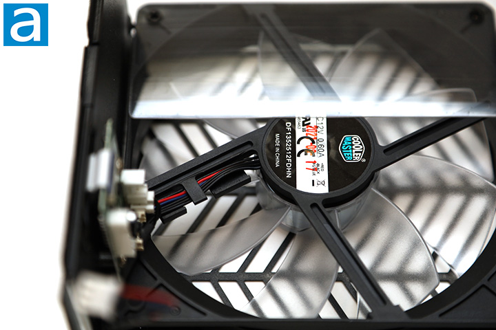 Lastly, we can see the LCD controller board and a 135mm fan that provides cooling to the Cooler Master XG850 Plus Platinum 850W's internal components. It is connected to the mainboard using a 3-pin connector. A 135mm fan is only marginally smaller than the 140mm maximum you can fit in an ATX power supply, and it is beneficial in most cases in providing lots of airflow at lower speeds for quiet operation. The fan is a Cooler Master DF1352512FDHN, as shown in our photo above. It is a fluid dynamic bearing fan with a clear impeller for ARGB LEDs specified at 0.6A for a maximum speed of 1800 RPM, but capped at around 750 RPM by design. Fans with fluid dynamic bearings generally have much longer lifespans compared to sleeve bearing fans and is quite suitable for this application.