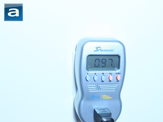 The active power line correction shifted between 0.95-0.97; but mainly stayed at 0.97, which is acceptable for this power supply. Of course, it would be best if it was 0.99 -- but since my computer configuration did not consume too much power, I would expect the PF to reach 0.99 as the power draw increases and reaches optimal operating loads.