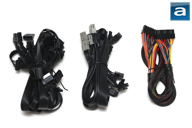 A total of 12 modular cables are included out of the box. All cables are flat and easy to bend, making them extremely easy to work with. The ATX 24-pin, ATX 4-pin/EPS 8-pin and PCIe 8-pin cables are all 16 AWG, while the rest are 18 AWG. The following cables are included out of the box: