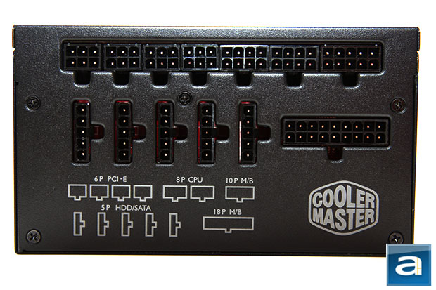 Moving on, to ensure you know what is going on, a diagram is situated at the bottom for minimal ambiguity. From the top to bottom and left to right, we have four PCI Express outputs for eight 6+2 pin connectors, two ATX/EPS 4+4 pin outputs, five SATA/Molex outputs for nine SATA, four Molex, and one floppy, as well as the two connector blocks for the ATX 24-pin. Incompatible outputs will not physically fit into each other, so I think Cooler Master has done a great job in this regard. This generous array of available connectors should be more than sufficient for casual users and power enthusiasts alike.