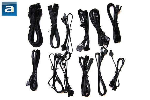 Like the Cooler Master Silent Pro Hybrid 1050W, the Cooler Master V1000 is a fully modular power supply. This means all cables are completely detachable from the main unit. While it is somewhat questionable with regards to why this is necessary, since cables such as the ATX 24-pin and ATX 4-pin/EPS 8-pin have practically an 100% chance of being connected at all times, it may prove to be beneficial to an extent when building your computer initially. The downside to this is higher electrical contact loss at the connectors compared to permanently fixed cables. In the end, this comes down to personal preference, and we have no problems with this design.
