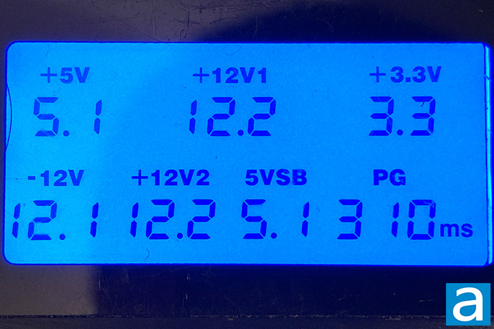 Voltages with minimal load are generally accurate, which is a basic requirement of power supplies out of the box. In this situation, all are all within 2%. The PG (Power Good) delay seems to be well within its rated range and general power supply standard of 310ms.