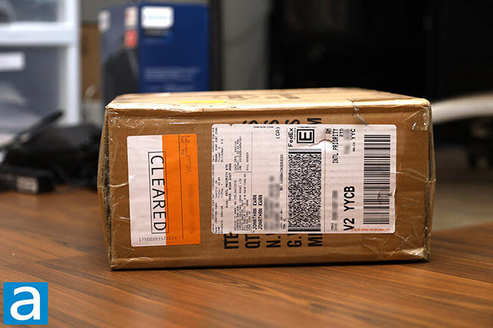 Our review unit of the Corsair CX750F RGB 750W came in a medium-sized brown corrugated cardboard box from Hong Kong. I cannot remember the last time I received a review sample directly from Asia, haha. It is nice to see something shipped out of the place I was born in. Using FedEx International Priority, everything arrived in mostly acceptable condition to us here in Calgary, Alberta, Canada for our review today. The box looked a bit crushed and beat up, but the contents inside looked just fine.