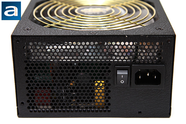 Starting from the back part of the power supply, we have the same familiar honeycomb mesh design like most PSUs with bottom mounted fans; and the standard on/off switch located on the right of the male connector for power input on the western edge (Given that you look at it from the perspective that the fan is at the bottom). The low resistance honeycomb mesh design is implemented to maximize airflow and minimize air resistance. This is done as heat needs to leave the power supply as easily and efficiently as possible, because the Deepcool Quanta DQ750 750W incorporates only one 140mm fan at the bottom, with no auxiliary fans. However, I think the design can be a little more efficient, as the power input and switch panel occupies nearly a quarter of the rear exhaust area. Ventilating the area next to the AC transient filter stage will probably help. As with most new power supplies, the Deepcool Quanta DQ750 has an automatic full range (100V-240V) AC line voltage selection, so the user does not have to worry about manually selecting input voltage.