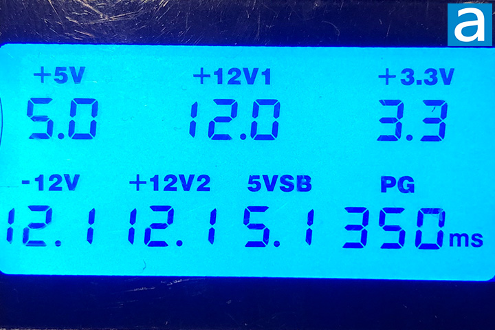 Voltages with minimal load are generally accurate, which is a basic requirement of power supplies out of the box. In this situation all are all bang on. The PG (Power Good) delay seems to be well within its rated range and general power supply standard of 360ms.