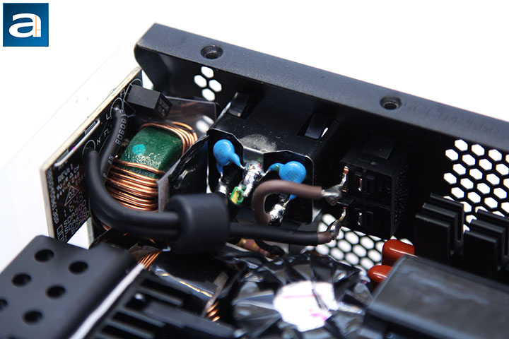 On the primary side, we can see one Japanese brand Nippon Chemi-Con capacitor. Japanese brand capacitors are usually what we expect from something in this price range, so this is nothing surprising. Our 600W version of FSP's Dagger incorporates one 330µF x 450V capacitor. This unit is rated at 105c; whereas more value oriented power supplies usually use 85c rated capacitors.