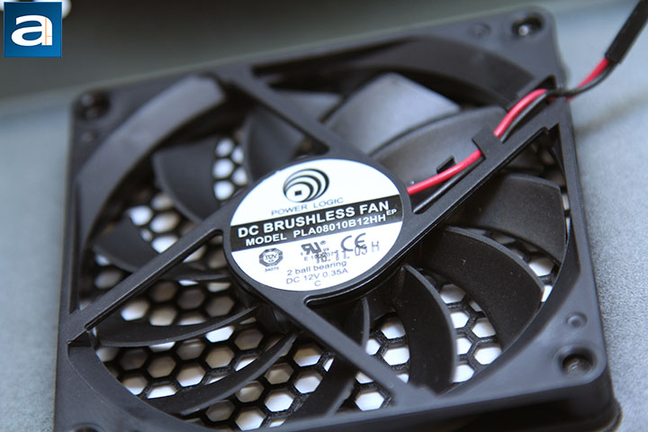 Lastly, we see an 80mm fan that provides cooling to the FSP Dagger 600W's internal components. It is connected to an add-in board using a 2-pin connector. An 80mm fan is rather small nowadays for a power supply with a bottom mounted fan even for a SFX power supply, but if not a lot of heat is being generated, it should not be much of an issue. The Dagger 600W is not a semi-passive power supply. An 80mm fan is used to keep the enclosure as small as possible. Power Logic is the fan OEM, with PLA08010B12HH as the model number, as shown in our photo above. Further research indicates the PLA08010B12HH is a dual ball bearing fan specified at 0.35A. Ball bearing fans are very reliable at the expense of noise.