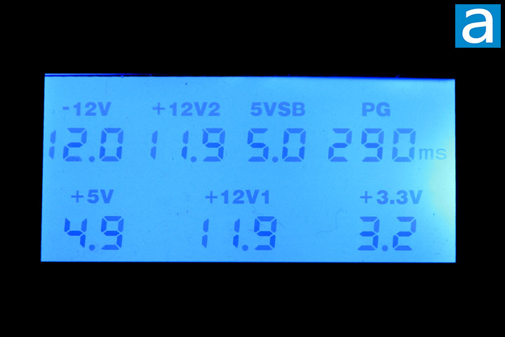Voltages with minimal load are generally accurate, which is a basic requirement of power supplies out of the box. In this situation all are within 4%. The PG (Power Good) delay seems to be well within its rated range and general power supply standard at 290ms.