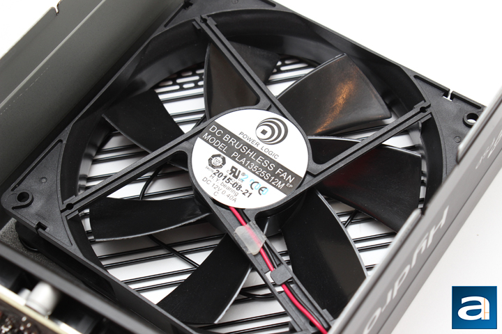 The last internal component is definitely still an important one, as it provides cooling to all of the FSP Hydro G 850W's components. If you were wondering why this unit is called the Hydro G in the first place, the only place mentioning hydro is the fan, which is a hydro dynamic bearing fan. This 135mm fan is connected to the mainboard of the power supply using a two pin connector. However, this is also a semi-passive power supply, as the fan only turns on during higher loads. This size of a fan is great to see, and fits almost perfectly into the Hydro G's size. The fan, as you can tell from the picture, is a Power Logic fan. Further research of the PLA13525S12M shows this runs at 12V 0.4A, with an airflow rating of 111.1CFM and static pressure of 3.53mm H2O. This fan spins up to 2000rpm, and has a noise rating of 41.6dBA.