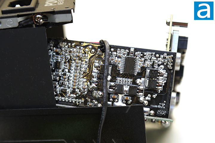 Opening the FSP Hydro G Pro 1000W is quite straightforward with the removal of four screws. Taking out the internal components from the enclosure requires the removal of eight more. Our photo above shows an overhead view of its internal components. Its OEM is, unsurprisingly, FSP themselves. One highlight of the FSP Hydro G Pro is the interior is coated for reliable operation in up to 95% relative humidity conditions. It features an LLC half bridge topology with DC-to-DC converters. At first glance, the build quality appears to be excellent. There are three main heatsinks inside and almost no wires. A big and small heatsink are located on the primary side, both of which are painted black. One other black colored heatsink can be found down the line with two integrated circuits attached to it.