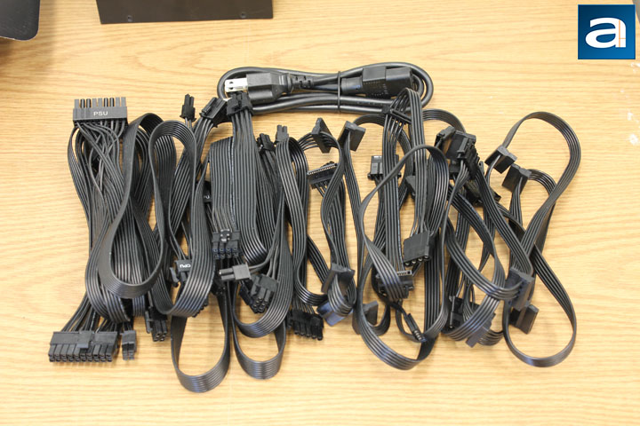 Out of box, we have eleven modular cables, and one power cable coming with the FSP Hydro PTM 750W. The modular cables are generally easy to bend. The flat cables are flexible enough to allow easy cable management in a desktop computer. As for current handling, these wires are 18AWG, which are high enough in this context.