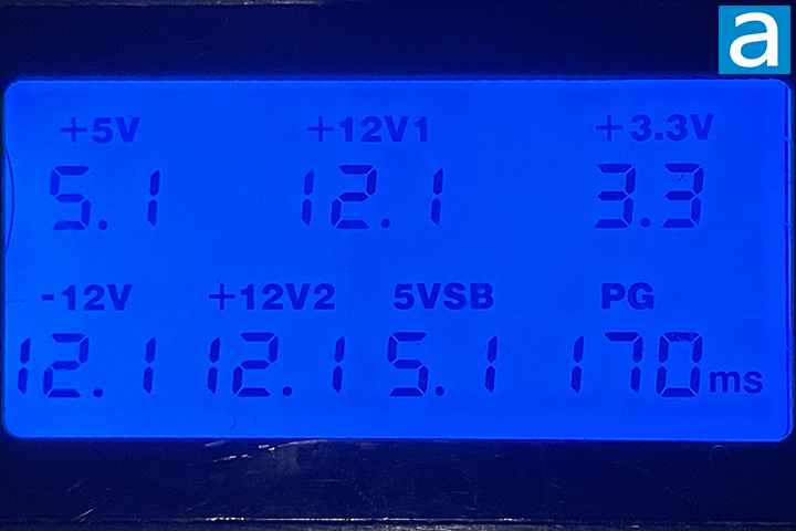 Voltages with minimal load are accurate, which is a basic requirement of power supplies out of the box. This power supply is ATX 3.0 compliant and officially supports Alternative Sleep Mode with 100 to 150ms PG specifications, so it looks like the PSU tester I used was not fast enough to pick up the true PG signal. The ATX design specifications state a PSU's PG is required to be between 100ms and 500ms, with 250ms maximum for Non-Alternative Sleep Mode and 150ms for Alternative Sleep Mode.