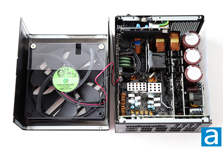 The fan is a Protechnic Electric MGA13512XF-A25, as shown in our photo above. The MGA13512XF-A25 is a fluid dynamic bearing fan with a specified at 0.38A for a maximum speed of 2300 RPM. The fan is not supposed to activate until the PSU is loaded up to 40% in Eco Mode. As such, it should remain off during normal operation, and even when it is on, FSP uses a silent speed profile, so noise is not going to be a problem at all. Fans with fluid dynamic bearings generally have much longer lifespans compared to sleeve bearing fans, and are quite suitable for this application.
