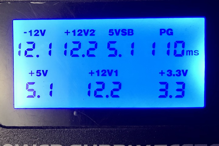 Voltages with minimal load are accurate, which is a basic requirement of power supplies out of the box. The Power Good or PG delay is tested at 110ms. This power supply is ATX 3.1 compliant and officially supports Alternative Sleep Mode with 100 to 150ms PG specifications, so we were able to verify its claims. The ATX design specifications state a PSU's PG is required to be between 100ms and 500ms, with 250ms maximum for Non-Alternative Sleep Mode and 150ms for Alternative Sleep Mode.