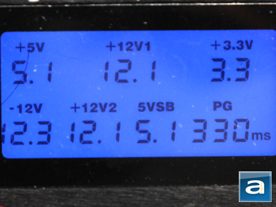 Voltages with minimal load are generally accurate, which is a basic requirement of power supplies out of the box. In this situation all are within 3%. The PG (Power Good) delay seems to be well within its rated range and general power supply standard of 330ms.