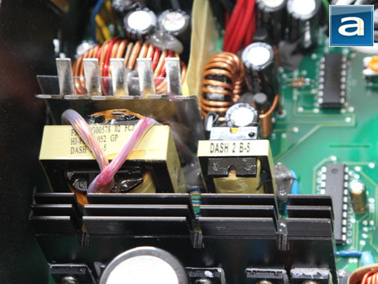One of the biggest highlights of the AURUM Gold is what the company refers to as the Active Clamp Topology and Multiple Intelligence Ability, or MIA IC. The MIA IC is a multi-function integrated circuit. Working in conjunction with its Active Clamp Topology, this allows a large reduction in physical components; and FSP claims large strides in AC to DC conversion efficiency. We have no question about the former; it is evident right from the pictures above. The latter is achieved with zero current switching and zero voltage switching between the AC input and DC output.