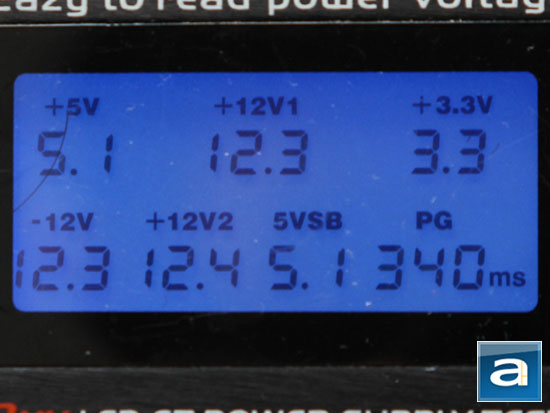 Voltages with minimal load are generally accurate, which is a basic requirement of power supplies out of the box. In this situation all are within 3%. The PG (Power Good) delay seems to be well within its rated range and general power supply standard of 340ms.