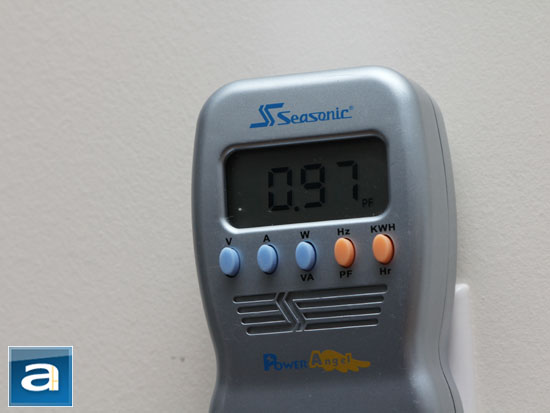Active power correction is important to correct AC load line loss. In AC power, there are three components to it; as there is a phase difference between current and voltage. This makes up the power triangle, which consists of the following: Average usable power (P, measured in watts), reactive power (Q, denoted as VA-R), and total power (S, written as VA). While they all have the same physical units, it is not the same thing as aforementioned. What we want is the average usable power -- with as little wasted reactive power as possible. The total power provided over the AC line is the magnitude of the two combined (sqrt(P^2+Q^2)). Power factor can then be easily calculated by P/S. The ideal value is 1.00, and this is where active PFC comes in. A nominal load of 100W (~17%) on the FSP AURUM Gold 600W had the power factor between 0.96 and 0.97. As the load increases, the PF should approach 0.99.