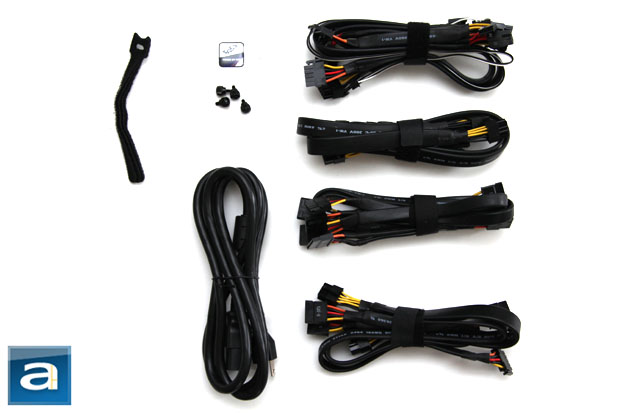 A total of eight modular cables are included out of the box, if you don't count the fan-only connectors. All modular cables are flat and easy to bend, making them extremely easy to work with. After using the AURUM CM Gold 650W last year, I have grown to be a big fan of the flat cables, and personally, I think they are quite a bit easier to work with than conventional sleeved units. 16 AWG wires are found on the ATX 24-pin and 4+4-pin bundles. Everything else is 18 AWG, which is standard, and to be expected.