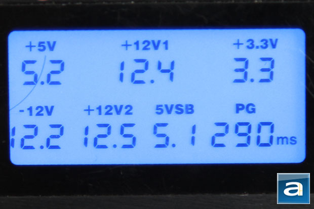 Voltages with minimal load are generally accurate, which is a basic requirement of power supplies out of the box. In this situation all are within 4.2%. The PG (Power Good) delay seems to be well within its rated range and general power supply standard of 290ms.