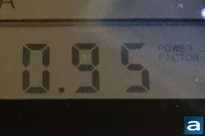Active power correction is important to correct AC load line loss. In AC power, there are three components to it as there is a phase difference between current and voltage. This makes up the power triangle, which consists of the following: Average usable power (P, measured in watts), reactive power (Q, denoted as VA-R), and total power (S, written as VA). While these components all measure power, they are not the same as each other. What we want is the average usable power, with as little wasted reactive power as possible. The total power provided over the AC line is the magnitude of the two combined (sqrt(P^2+Q^2)). Power factor can then be easily calculated by P/S. The ideal value is 1.00, and this is where active PFC comes in. Under nominal loads, the power factor value of the GAMDIAS ASTRAPE P1-750G 750W was at 0.95, indicating that the active PFC function is working well.