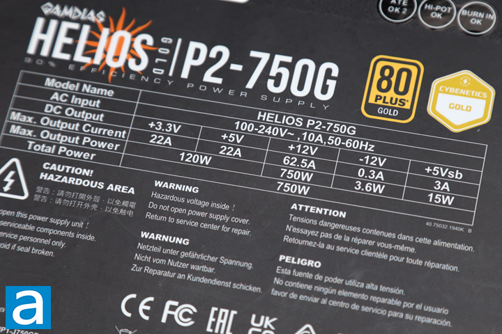 After going back to GAMDIAS with our findings, they removed all of the text and badges referring to Cybenetics from their product page. However, both badges can still be found on the power supply itself as well as their Amazon listing. Their updated marketing material on the product page says this unit is "designed to meet 80 PLUS Gold standards" rather than actually stating it has been verified. I find this statement quite misleading. All in all, any efficiency claims in the HELIOS P2 lineup are not backed by the third-party organizations it claims to be issued by.